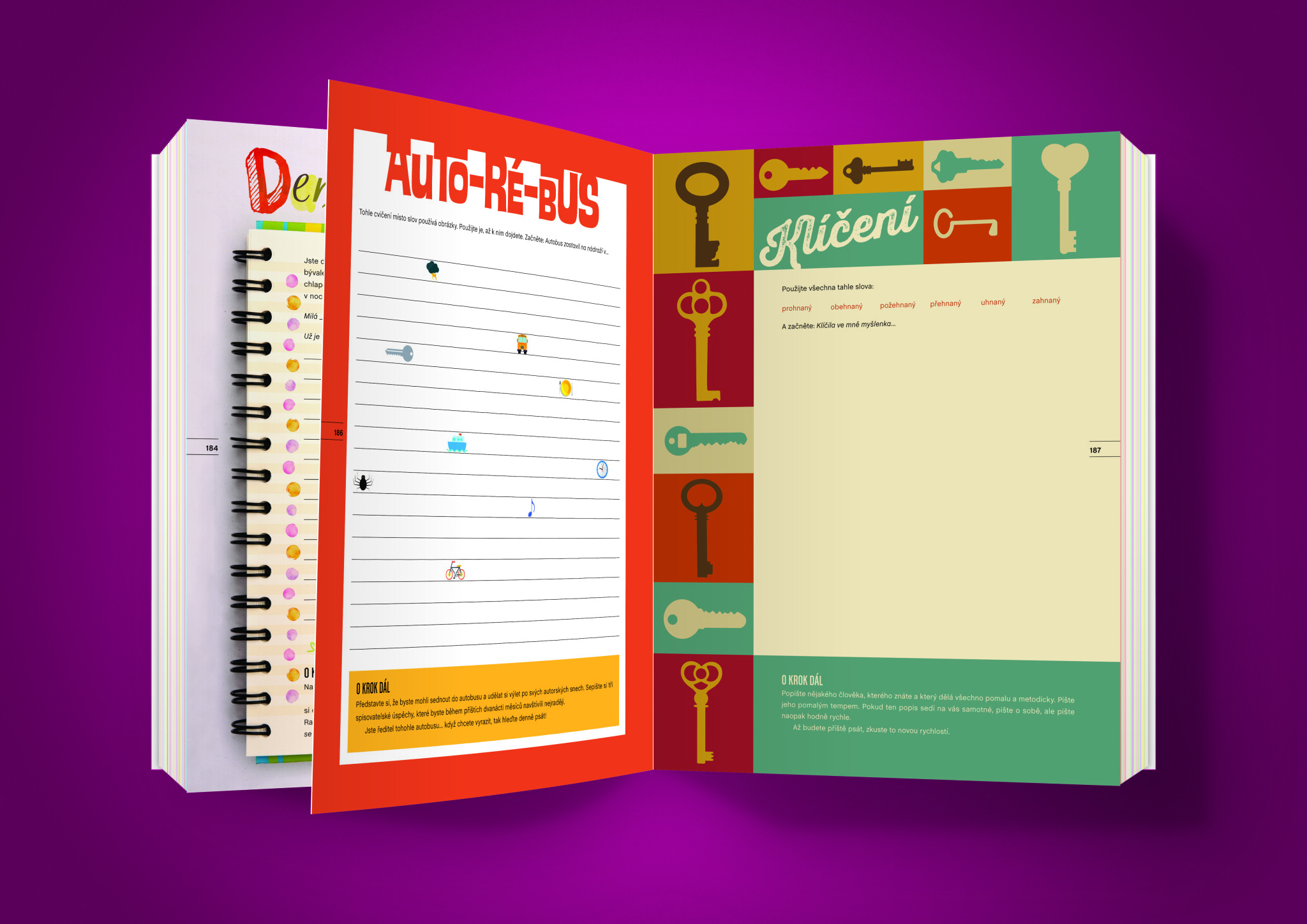 Jde o speciální cvičení, která zapojují výrazně pravou mozkovou hemisféru. Ta, jak je známo, zodpovídá za veškerou kreativitu člověka. Cvičení rozvíjejí nejen fantazii, ale také českou slovní zásobu, logické myšlení ve spojení s českým jazykem, jazykový postřeh a nápaditost, schopnost práce s jazykovými dvojsmysly apod.